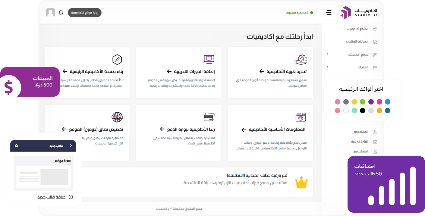 إمكانيـــة تخصيص أكاديميتــــك بالألوان التي تعبر عن هويتـــك والتحكم المرن والكامل بها.