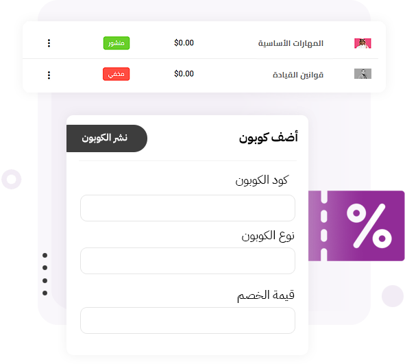 تستطيع التحكم فـــي أكاديميتك بإضافـــة دروسك بسهولــــة وتعديلها وحذفها والتحكم الكامل بها.